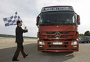 Η στιγμή του τερματισμού του 801ου γύρου. Δικαίως οι οδηγοί και οι τεχνικοί της Mercedes-Benz πανηγυρίζουν την είσοδο του νέου Actros στο Βιβλίο των Ρεκόρ Guinness.