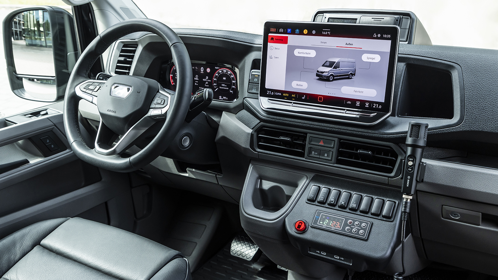 MAN TGE Next Level - γιόρτασε επίσης την πρεμιέρα του στην Busworld, εντυπωσιάζοντας με τα καινοτόμα συστήματα ασφαλείας του, αλλά και τον εργονομικό χώρο εργασίας του (βλ. ψηφιακό cockpit & τιμόνι πολλαπλών λειτουργιών για τον οδηγό).