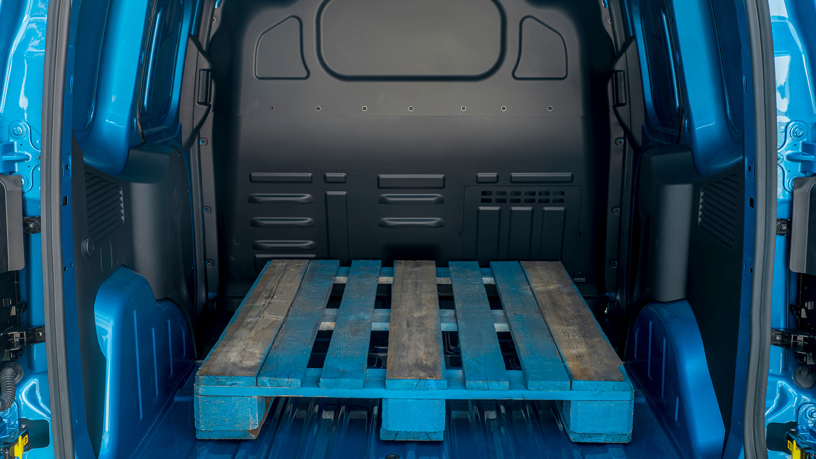 Το Μικρό e-Van της Ford Pro είναι σε θέση να υποστηρίξει στο εσωτερικό του φορτία με όγκο έως 2,0κ.μ. και μήκος έως 2,6m ενώ, το μέγιστο πλάτος της καρότσας των 1,5m (1,22m στους θόλους) επιτρέπει τη άνετη μεταφορά και ευρωπαλέτας.
