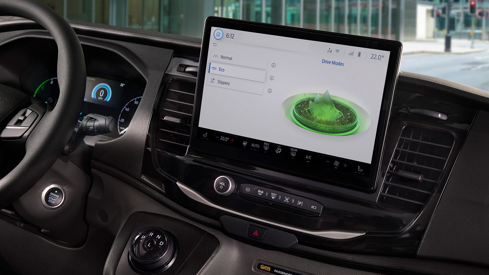 Ο οδηγός έχει στη διάθεση του τρία προγράμματα οδήγησης (Eco, Normal, Slippery), με το πρώτο να επιφέρει μείωση της χρήσης ηλεκτρικής ενέργειας έως και 8% - 10%. Η αυτονομία σε μεικτό κύκλο κίνησης ανέρχεται έως και στα 317km (έως 400km σε αστικό κύκλο κίνησης) ενώ δεν πρέπει να παραβλέπουμε μια πληρέστατη γκάμα ψηφιακών υπηρεσιών της Ford Pro που υποστηρίζουν τη χρήση του, όπως π.χ. το Scheduled Pre-Conditioning που επιτρέπει τον προγραμματισμό του συστήματος κλιματισμού κατά την φόρτιση του οχήματος.