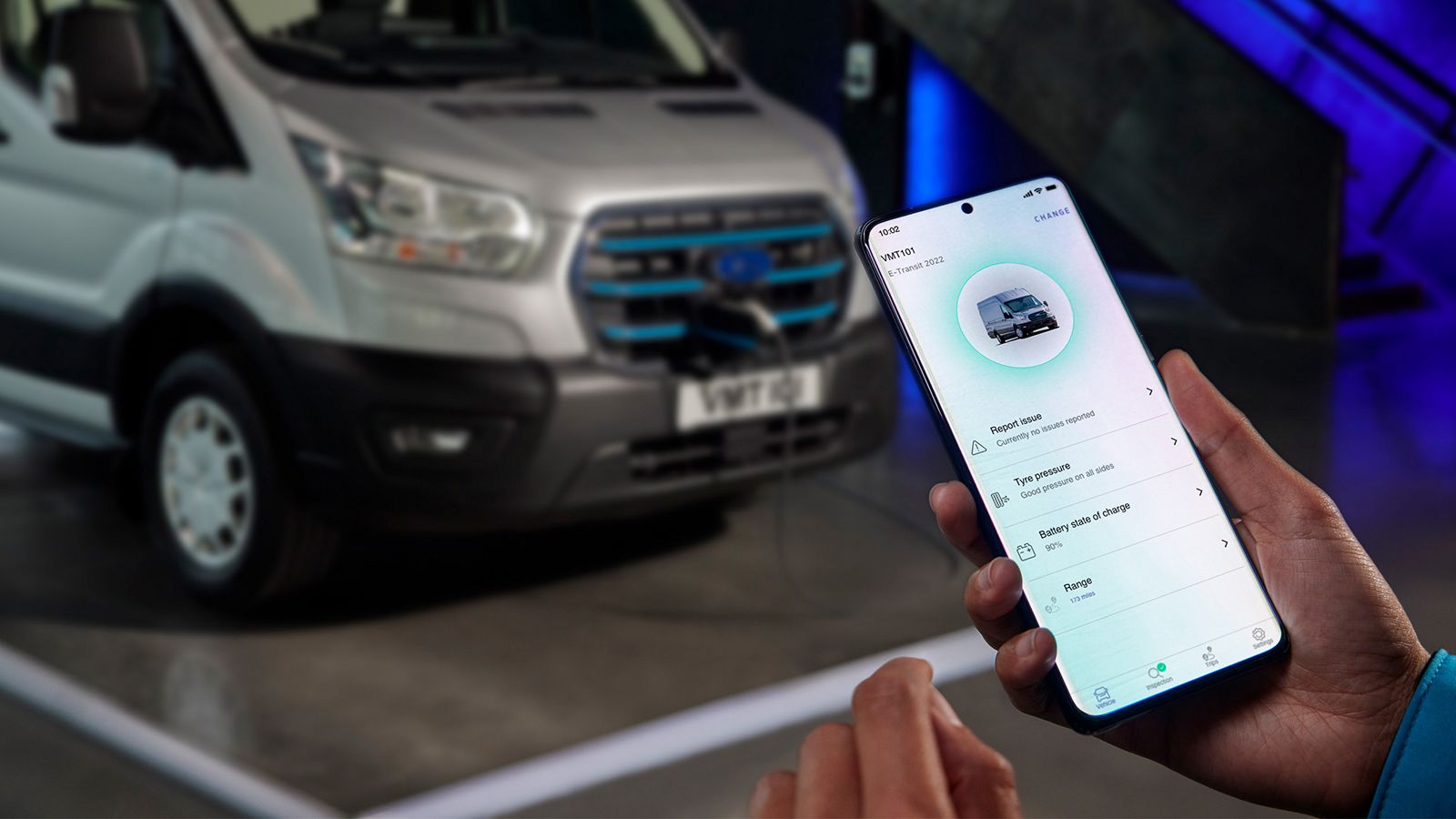Πολλαπλές ψηφιακές υπηρεσίες της Ford Pro βελτιώνουν την αποδοτικότητα για τον οδηγό και τον κάτοχο του ηλεκτρικού E-Transit.