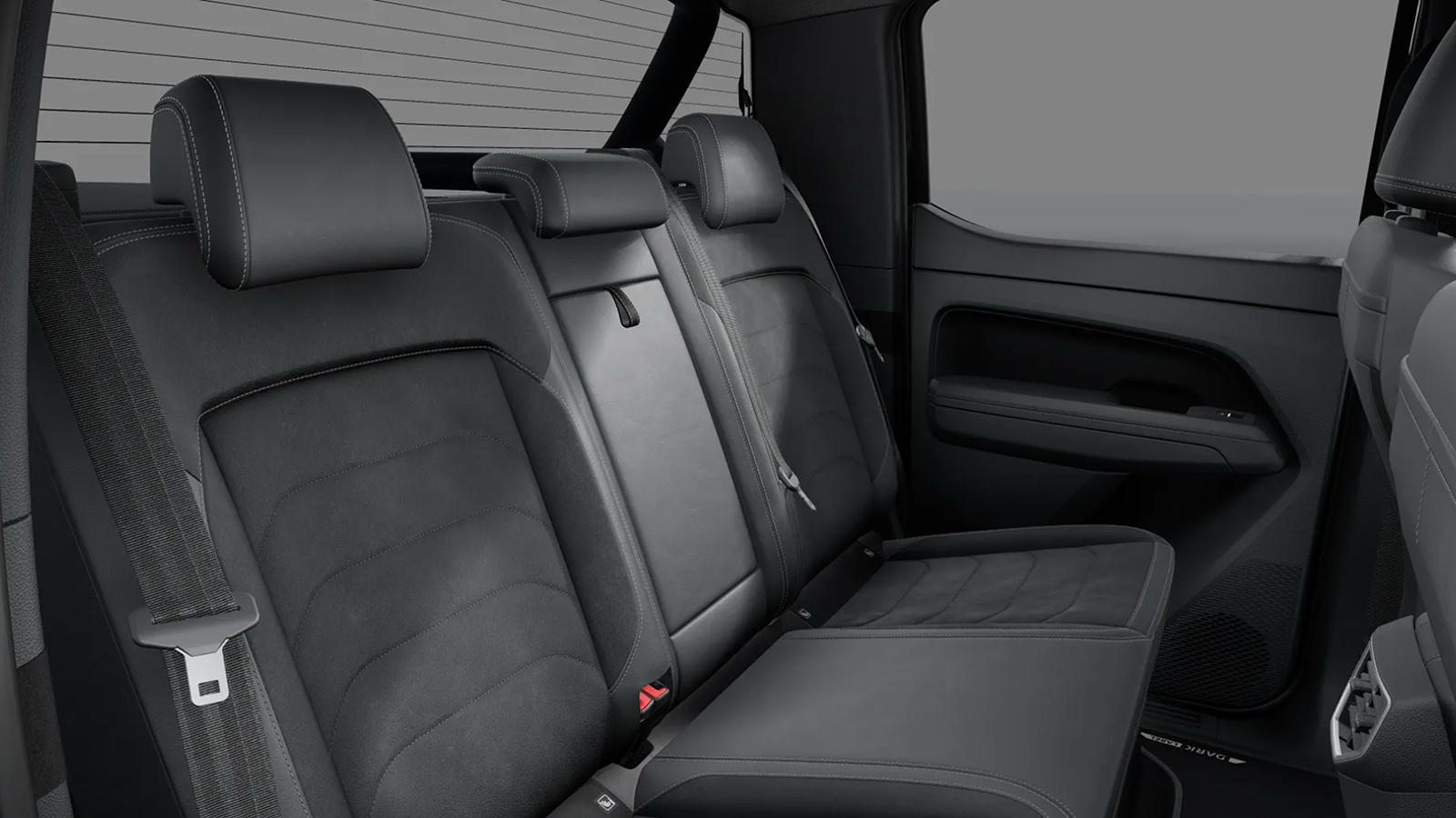 Αντίστοιχα, σε ό,τι έχει να κάνει με την πίσω όψη του, το Amarok Dark Label ξεχωρίζει χάρη στον μαύρο πίσω προφυλακτήρα του, τα σκούρα πίσω φώτα, τη μαύρη ματ μπάρα του, το σκούρο πίσω παράθυρο και τη μαύρη λαβή στην πίσω πόρτα του - με ένα έμβλημα V6 να κοσμεί επίσης το νέο ειδικό μοντέλο της γερμανικής εταιρείας.