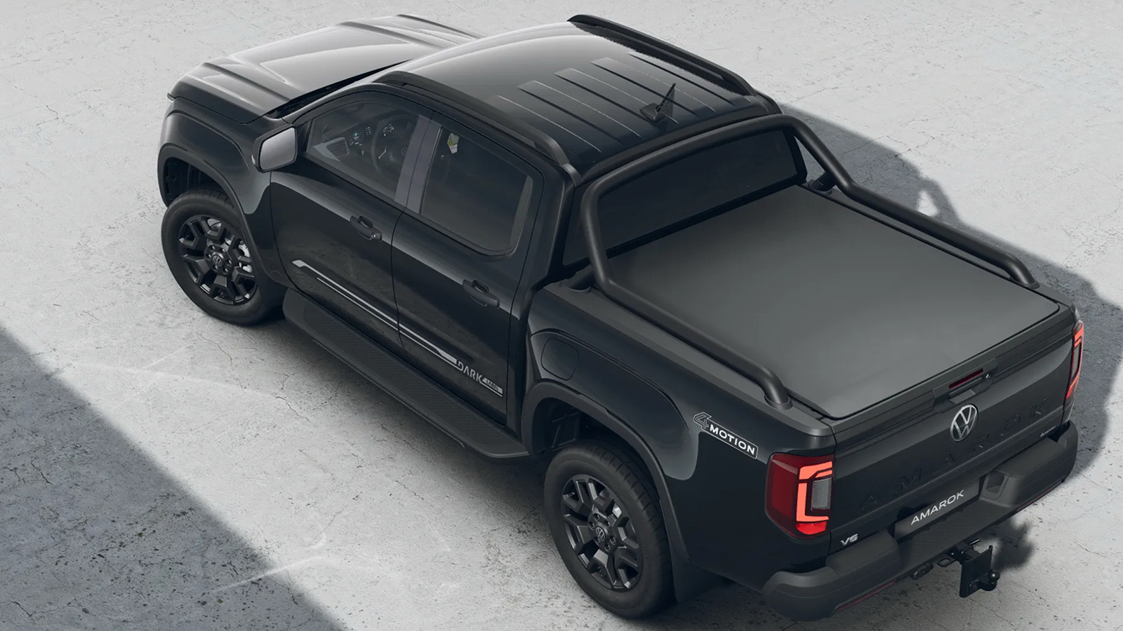 Έτσι, η πιο πρόσφατη ειδική έκδοση του Amarok λανσάρεται επί της ουσίας σε μαύρο χρώμα, υιοθετώντας πάντως τρεις διαφορετικές επιλογές απόχρωσης στο εξωτερικό του - Midnight Black Metallic, Dark Grey Metallic και Bright Blue Metallic – ενώ εκ πρώτης όψεως ξεχωρίζει για τη γραμματοσειρά του, αλλά και τους τροχούς αλουμινίου 20 ιντσών σε μαύρο ματ χρώμα.